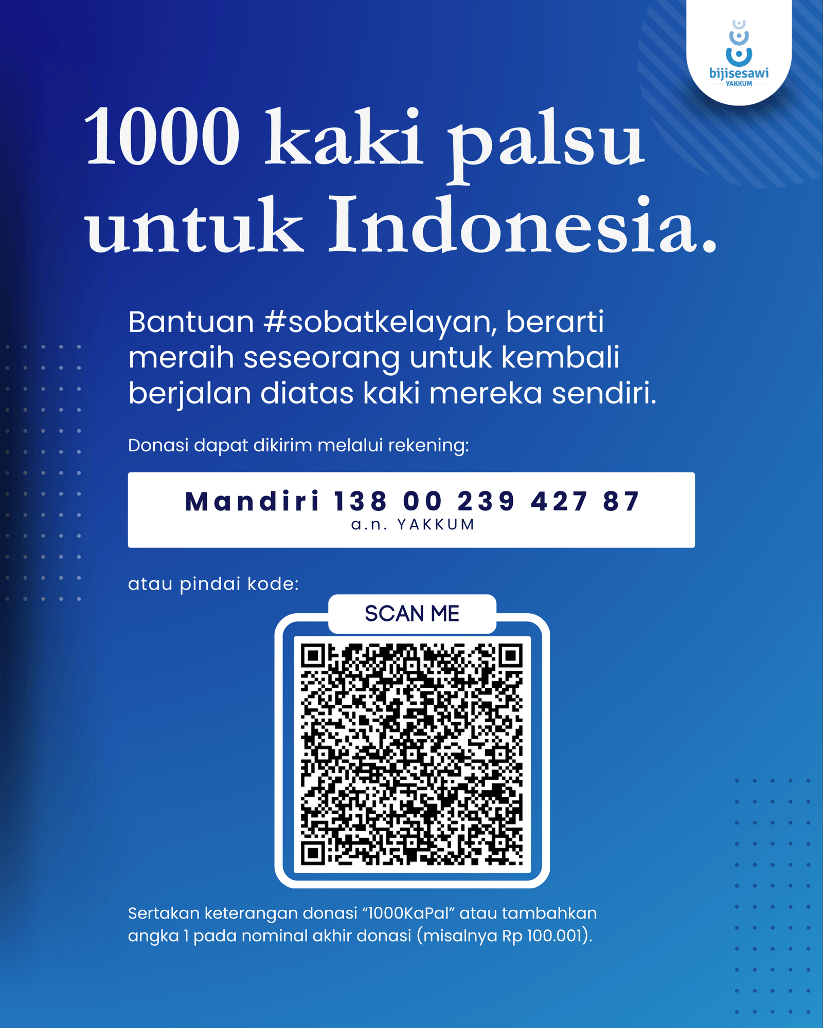 Mari bantu mereka miliki kaki palsu untuk menyusur jalan, menuju hidup yang makin berarti dengan donasikan sebagian rejeki kita melalui rekening Bank Mandiri: